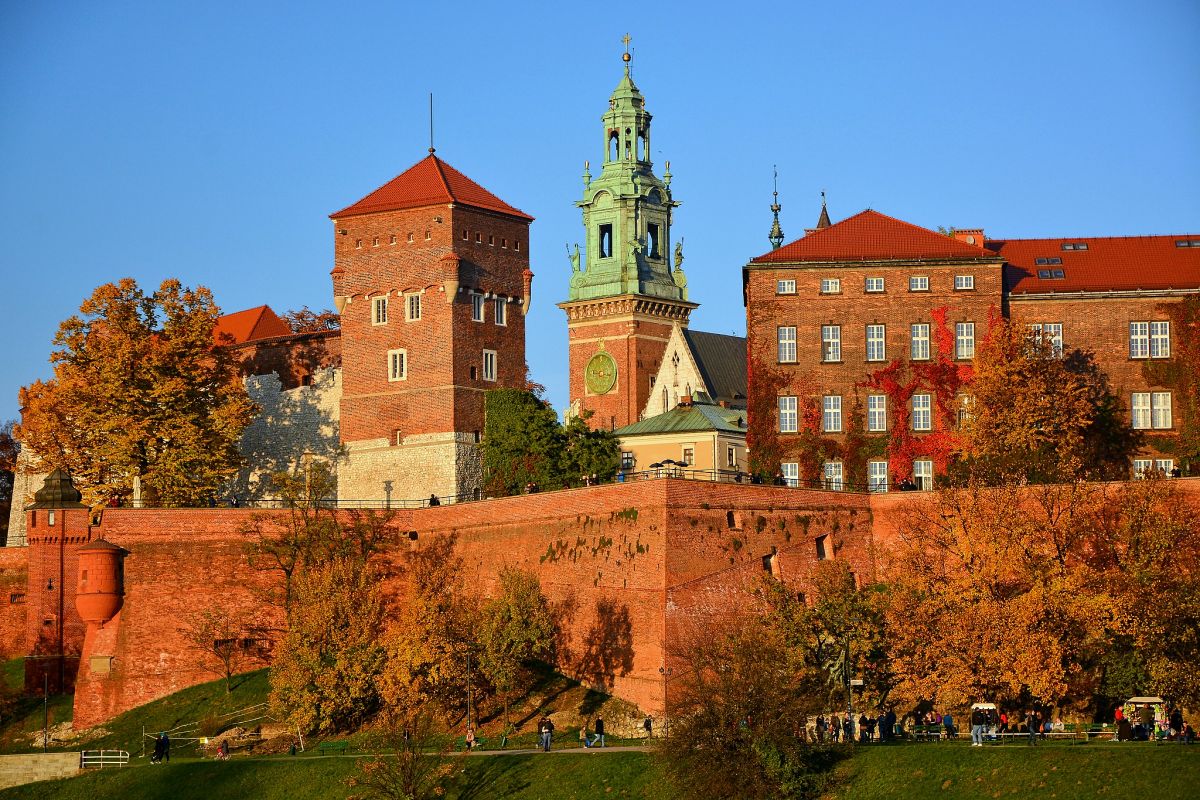 Wawel w listopadowym świetle wygląda inaczej niż latem — bardziej melancholijnie, a przez to jeszcze piękniej. Cienie katedry układają się dłużej na bruku, a nad Wisłą unosi się delikatna mgła. Z zamkowych murów rozpościera się widok na miasto spowite złotym blaskiem popołudnia, a echo dzwonu Zygmunta zdaje się brzmieć mocniej, kiedy wokół panuje cisza.