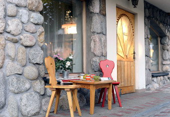 Apartament rodzinny mieści się w drewnianej willi w stylu zakopiańskim - Willi Motylek na parterze (budynek bez windy).