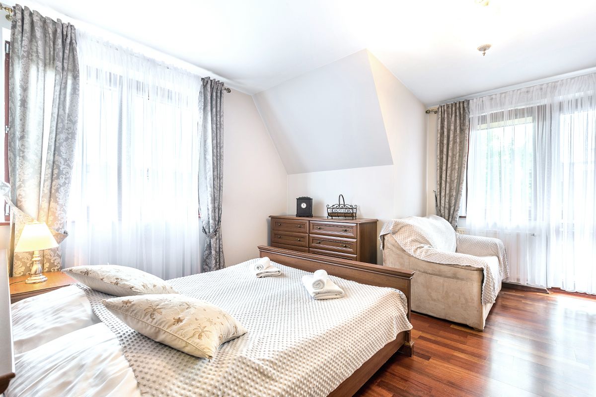 Kameralną atmosferę i spokój w apartamentach zapewnia oddzielna sypialnia. Dodatkowym atutem apartamentu jest balkon, na którym można wypić np. poranną kawę lub herbatę. Z okien apartamentów można także podziwiać widok na Giewont, drzewa i przepływający nieopodal potok.
