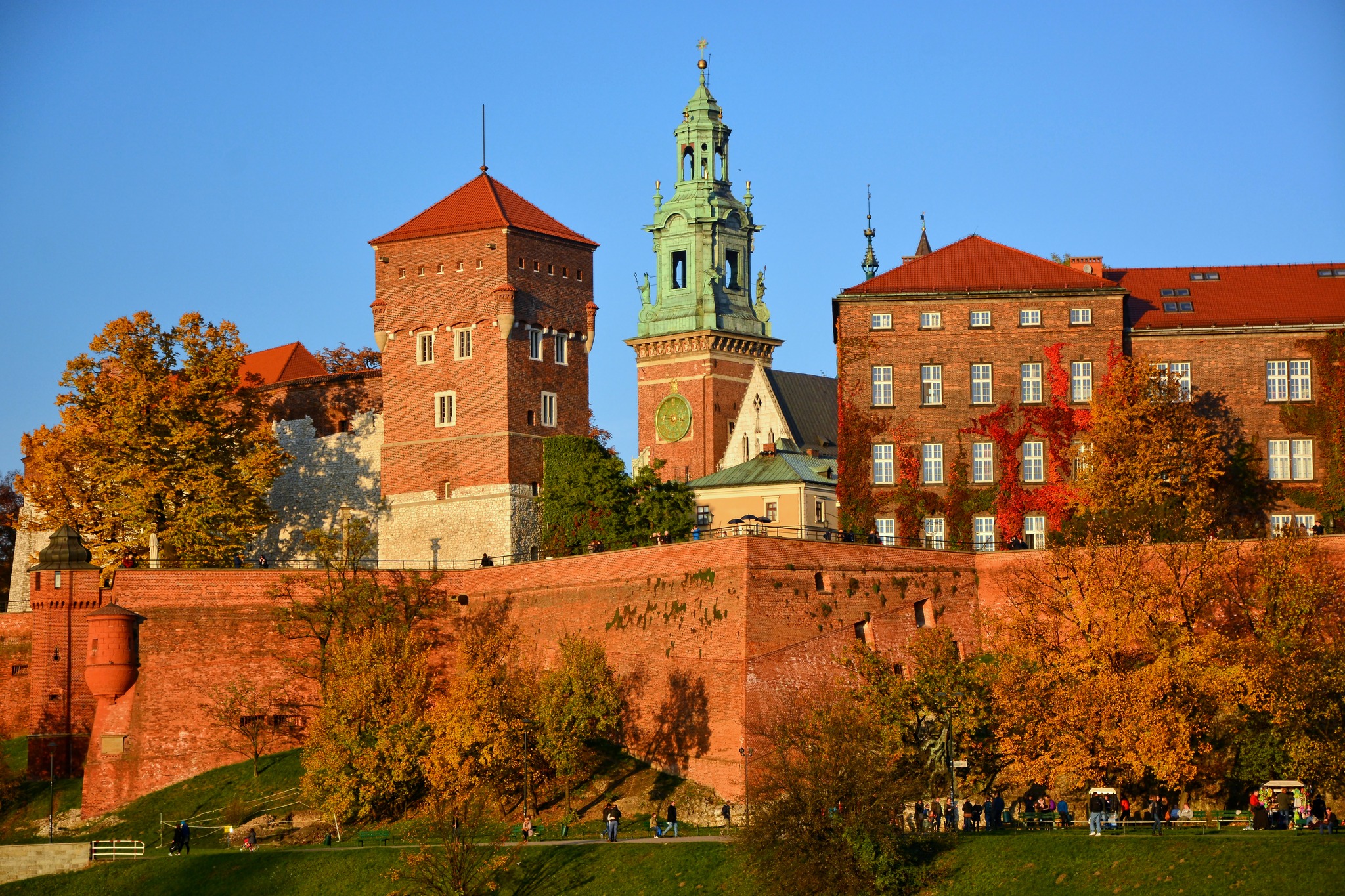Wawel w listopadowym świetle wygląda inaczej niż latem — bardziej melancholijnie, a przez to jeszcze piękniej. Cienie katedry układają się dłużej na bruku, a nad Wisłą unosi się delikatna mgła. Z zamkowych murów rozpościera się widok na miasto spowite złotym blaskiem popołudnia, a echo dzwonu Zygmunta zdaje się brzmieć mocniej, kiedy wokół panuje cisza.