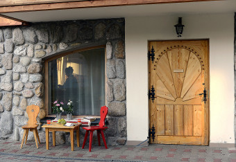 Apartament rodzinny mieści się w drewnianej willi w stylu zakopiańskim - Willi Motylek na parterze (budynek bez windy).