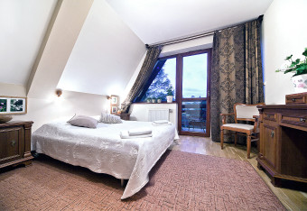 Kameralną atmosferę i spokój w apartamentach zapewnia oddzielna sypialnia. Dodatkowym atutem apartamentu jest balkon, na którym można wypić np. poranną kawę lub herbatę. Z okien apartamentów można także podziwiać widok na Giewont, drzewa i przepływający nieopodal potok.